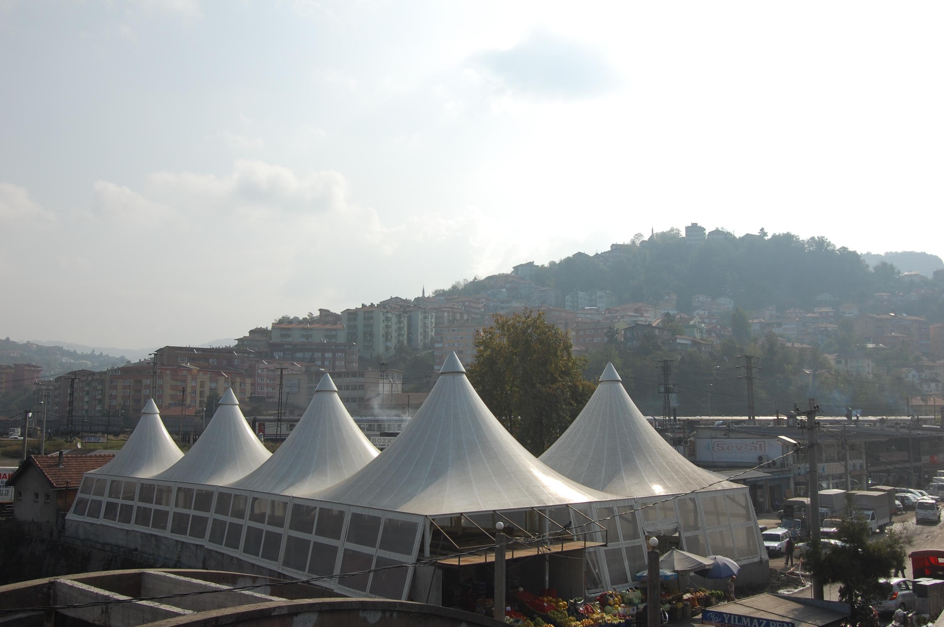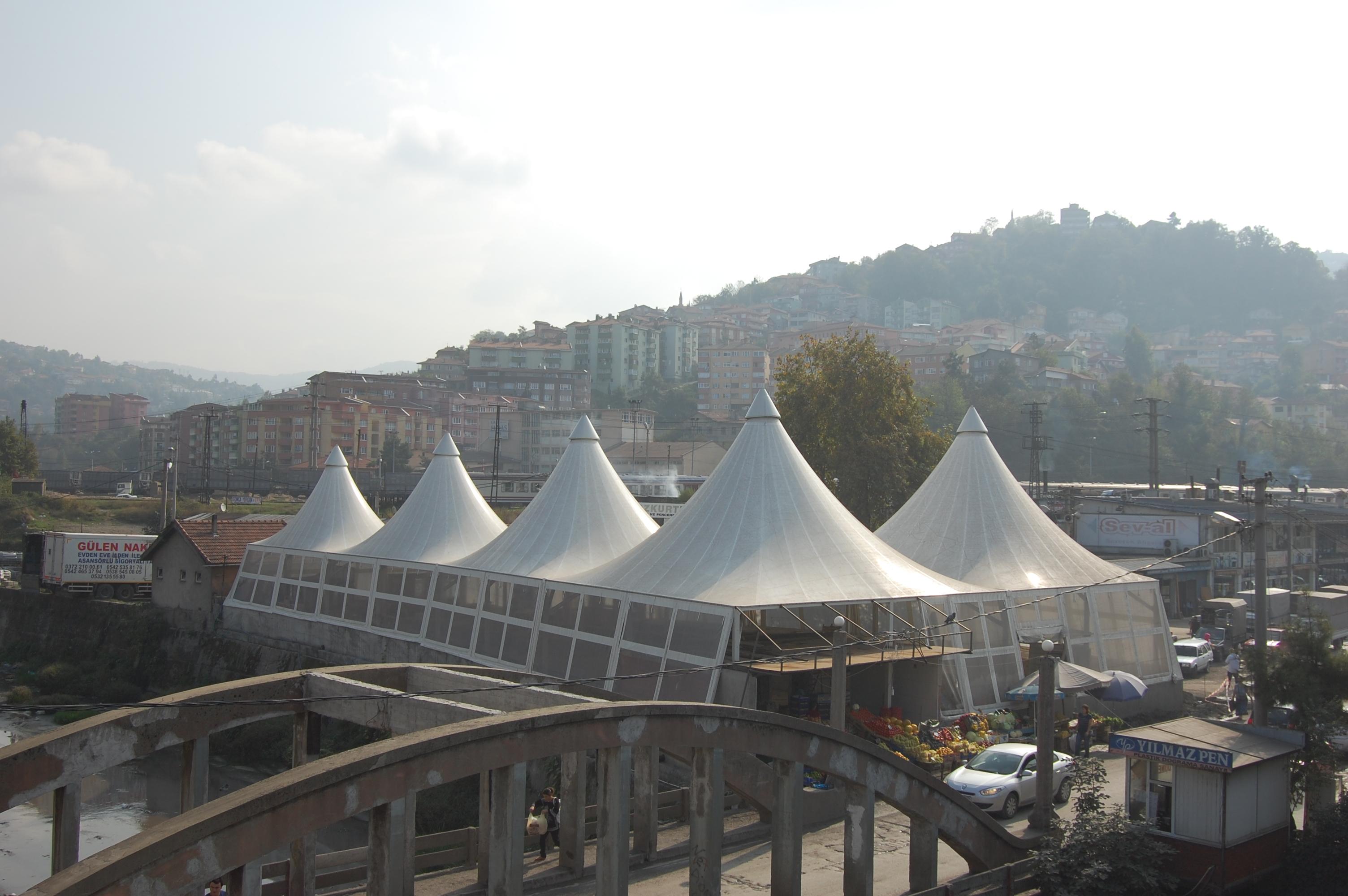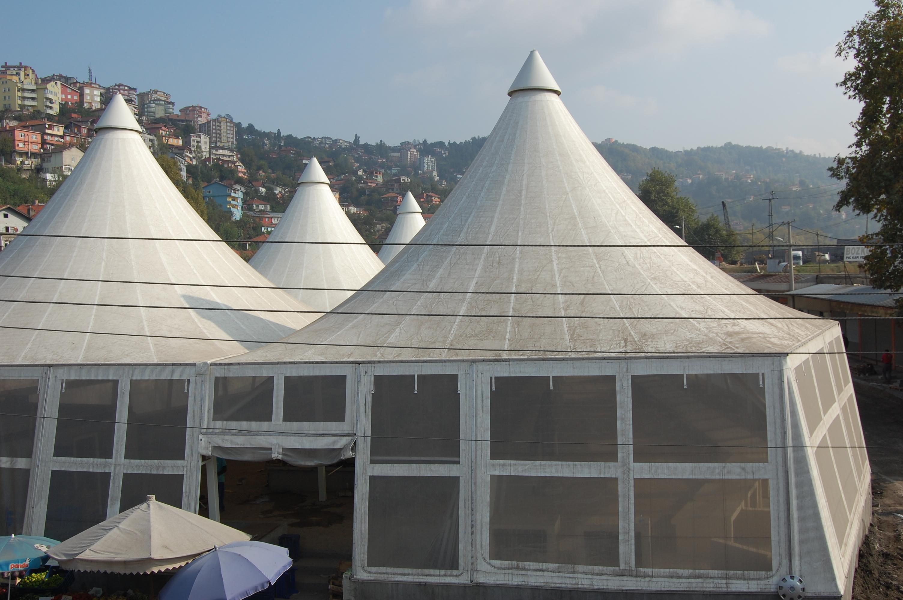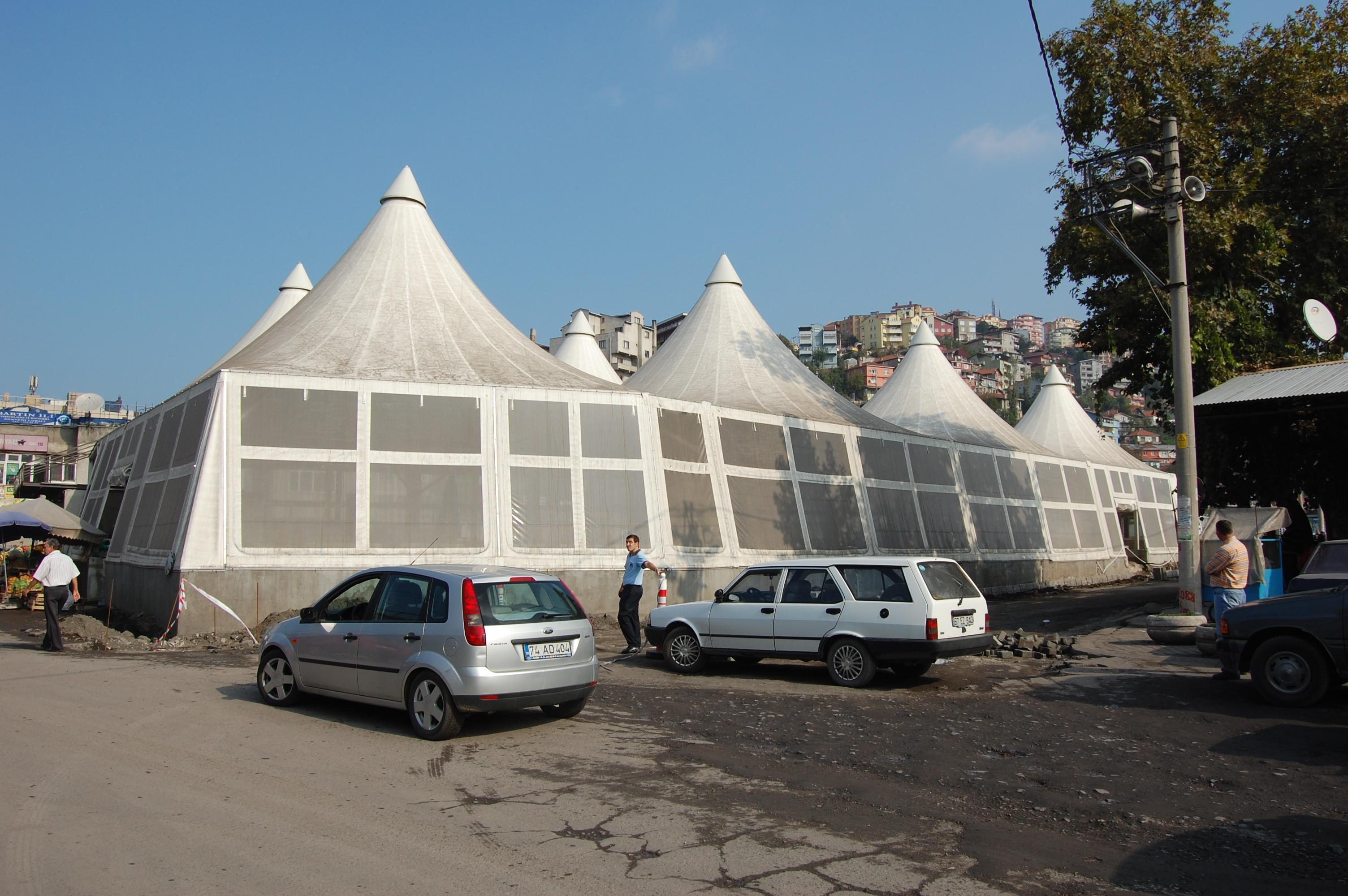 Proje: Membran – Zonguldak PazaryeriSektör: AVM / pazar alanları; yeme-içme mekânları; parklar / rekreasyon alanları / çocuk oyun alanlarıÜretim Yılı: 2012Yer: TürkiyeKonstrüksiyon Bileşeni: Çatı, Bahçe / PeyzajBüyüklük: >2.300 m²Sistem Tipi: Membran kaplamalı çatı sistemi