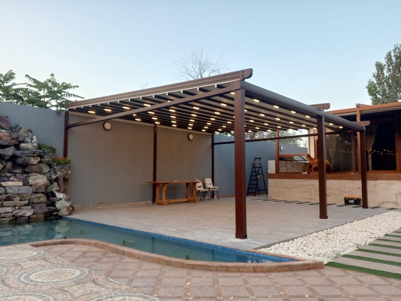 Alüminyum panelli, güneş açısına göre yön değiştirebilen en lüks pergola modelidir.