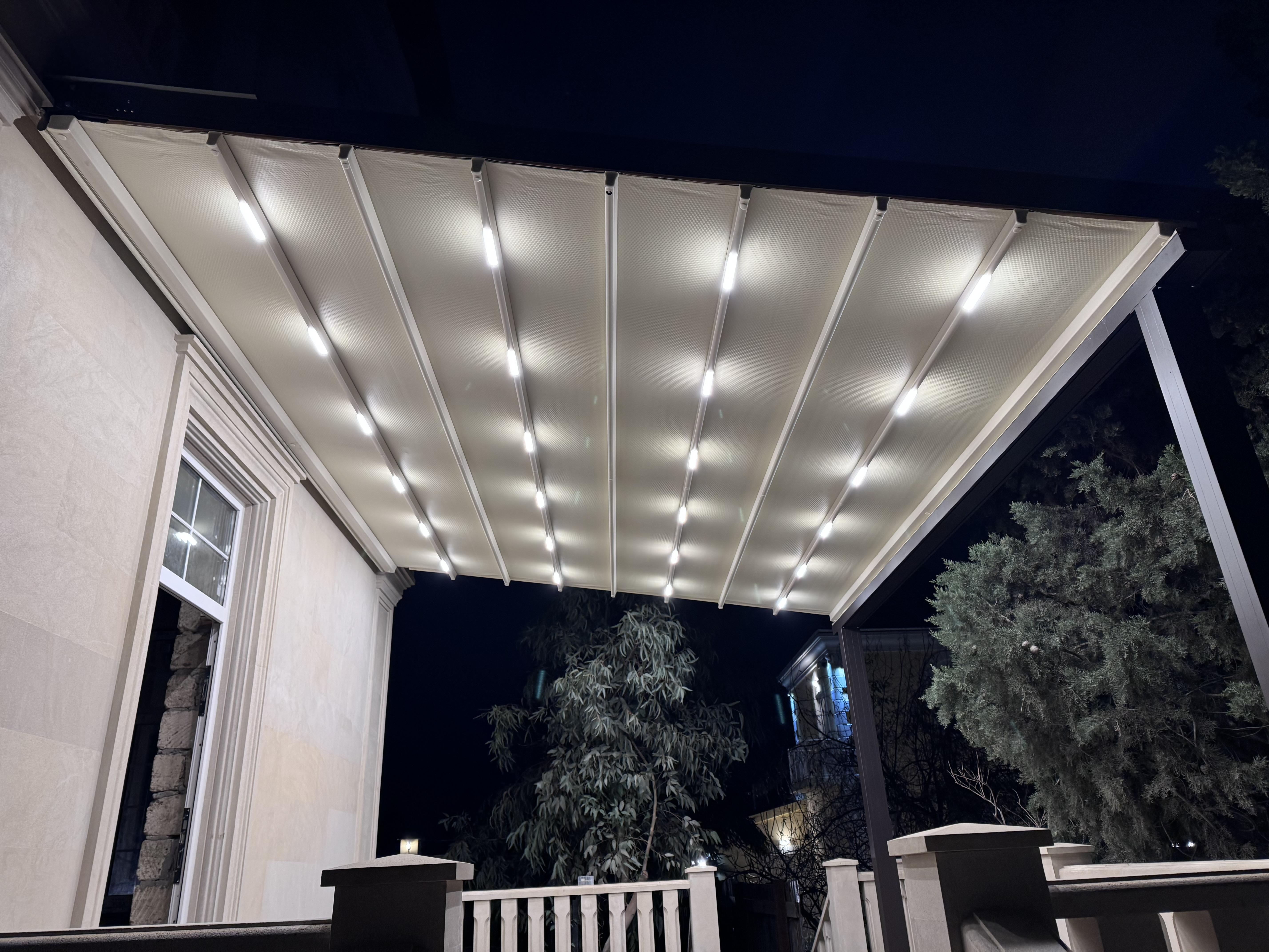Uzaktan kumandalı açılır-kapanır tente sistemidir.